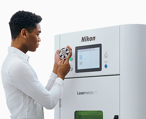 We provide material processing solutions that utilize Nikon's technologies, such as additive manufacturing using metal 3D printers, precision subtractive processing and riblet processing using laser processing machines.